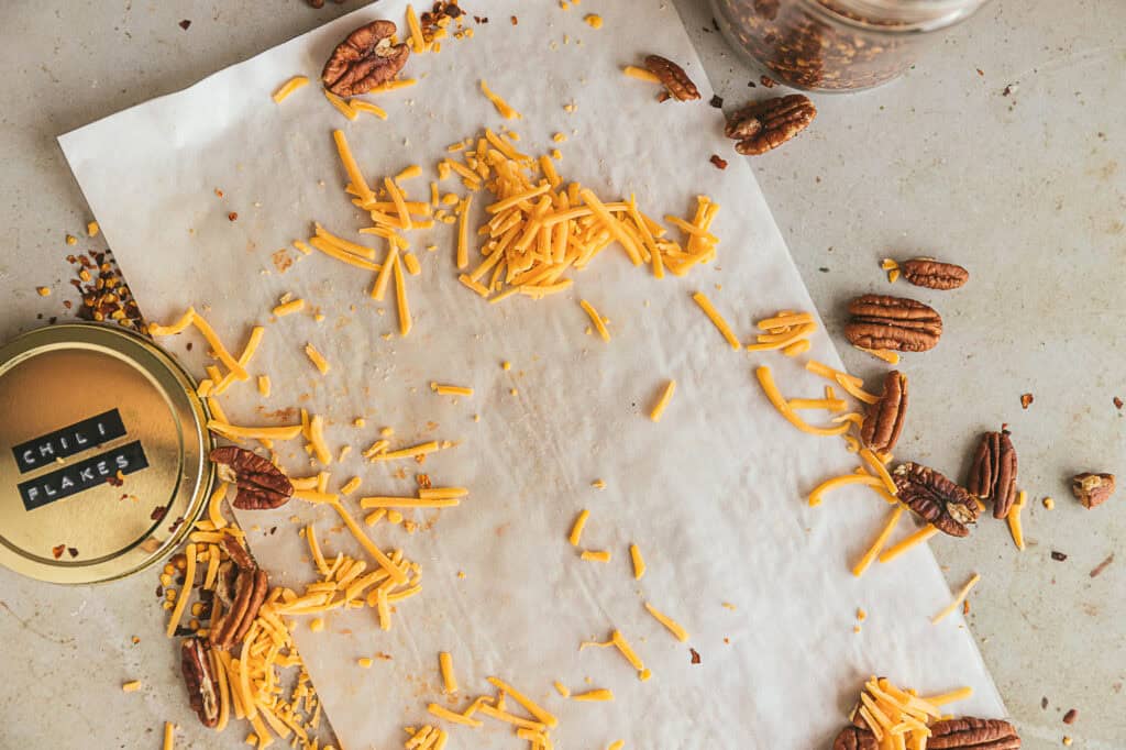 • Kosher salt – enhances all the savory notes and sharpens the cheddar flavor without making the crackers taste overtly salty.