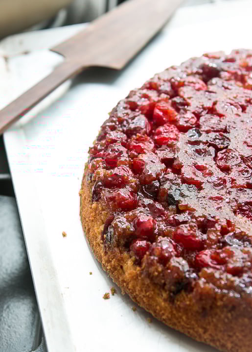 A buttery base holds up a toffee-like topping of cranberries. This cake is oh-so-good on its own, but a dollop of whipped cream (perhaps flavored with cinnamon or with lemon curd folded into it?) takes it to the next level. It’s also good with a scoop of cinnamon or vanilla ice cream, melting on top or alongside.